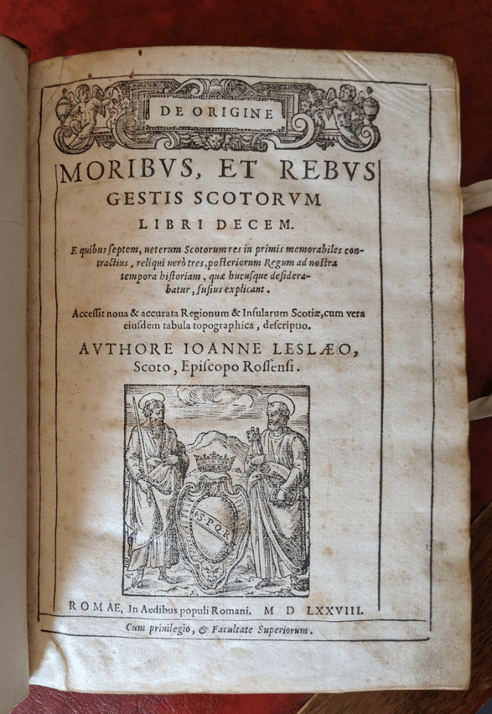John Leslie, Bishop of Ross. De origine moribus, et rebus gestis Scotorum libri decem. Rome: In Aedibus populi Romani, 1578.